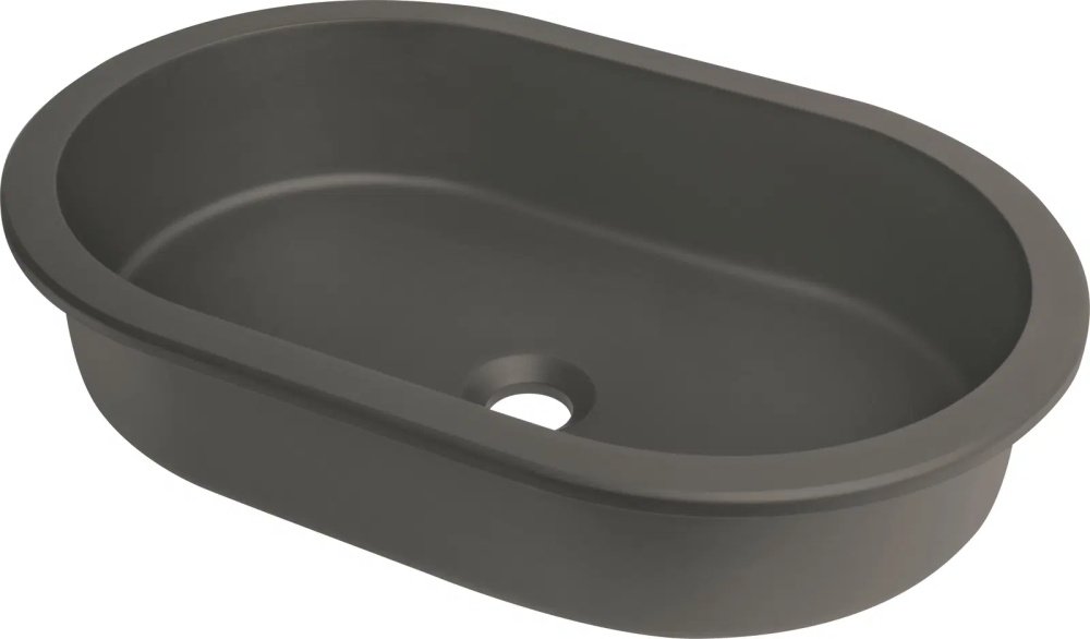 Okrúhly, jemne ovalny tvar bez viditeľných okrajov a bez prepadového otvoru pôsobí minimalisticky a esteticky. Farba antracit zaručuje neutrálne, svetlé ladenie, ktoré sa dobre kombinuje s rôznymi materiálmi – mramor, drevo, kompozit alebo sklo.