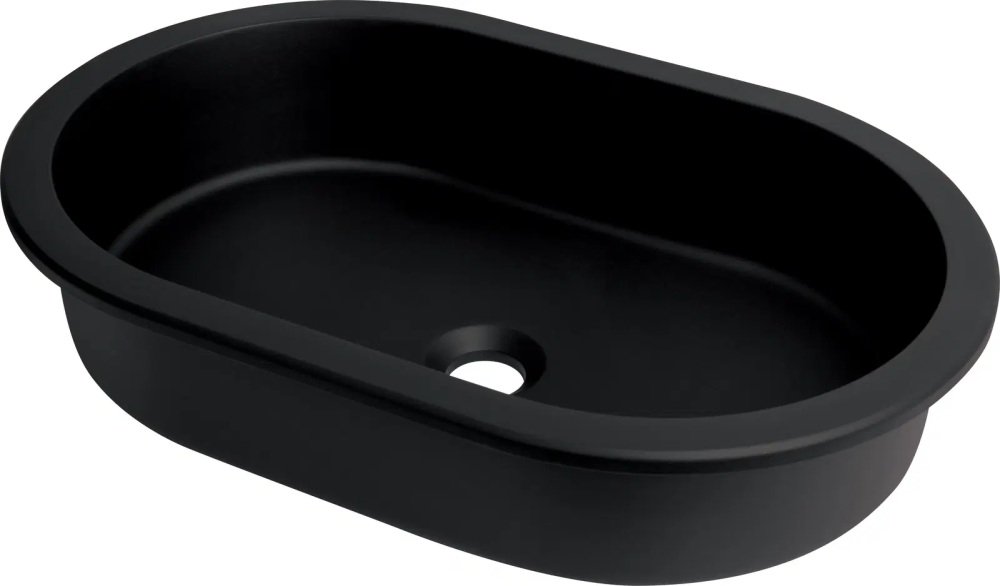 Okrúhly, jemne ovalny tvar bez viditeľných okrajov a bez prepadového otvoru pôsobí minimalisticky a esteticky. Farba nero zaručuje neutrálne, svetlé ladenie, ktoré sa dobre kombinuje s rôznymi materiálmi – mramor, drevo, kompozit alebo sklo.