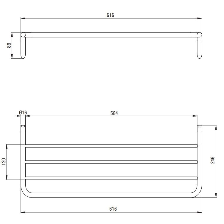 Materiál je mosadz, ktorý je vysoko odolný voči korózii a účinkom vlhkosti. Povrchová úprava brúsený bronz (PVD) ponúka zvýšenú odolnosť proti oderu, stabilnú farbu a zníženú viditeľnosť odtlačkov prstov. V kombinácii so skrytým kotvením pôsobí polička minimalisticky, bez vizuálne rušivých prvkov.