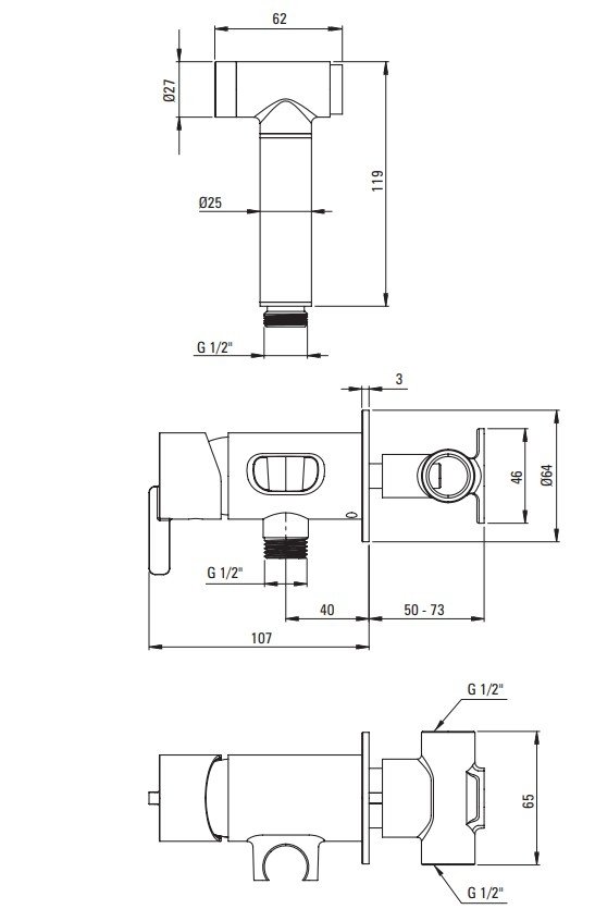 Typ spršky | Bidetta (ručne ovládateľná sprcha s výsuvnou hadicou) |
