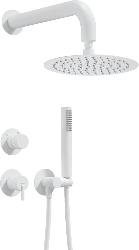 Podomietková sprchová súprava Deante SILIA NQS_A9YK v elegantnom bielom prevedení je navrhnutá pre moderné kúpeľne. Tento set ponúka hornú sprchu s priemerom 250 mm, ručnú sprchu s ochranou pred prehrievaním (Cool‑out), systém Anti‑calc pre jednoduchú údržbu dýz a Anti‑twist hadicu bez zamotávania. Všetky technické časti sú skryté pod omietkou, čo dodáva priestoru čistý a minimalistický vzhľad.