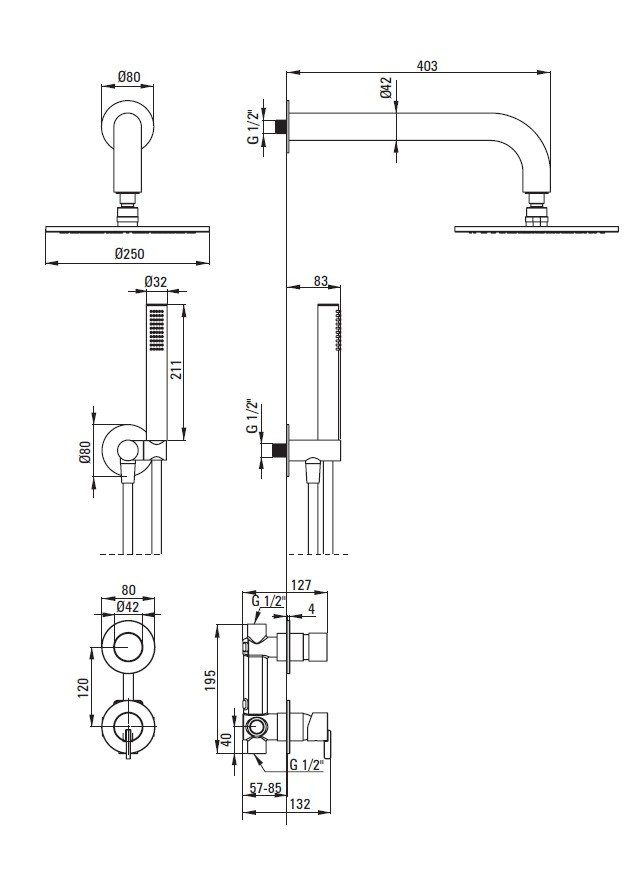 Vďaka skrytému (podomietkovému) usporiadaniu zostávajú na povrchu iba dekoračné prvky – horná sprcha, ručná sprcha, ovládacie prvky – čo výrazne prispieva k minimalistickému a čistejšiemu vzhľadu interiéru.