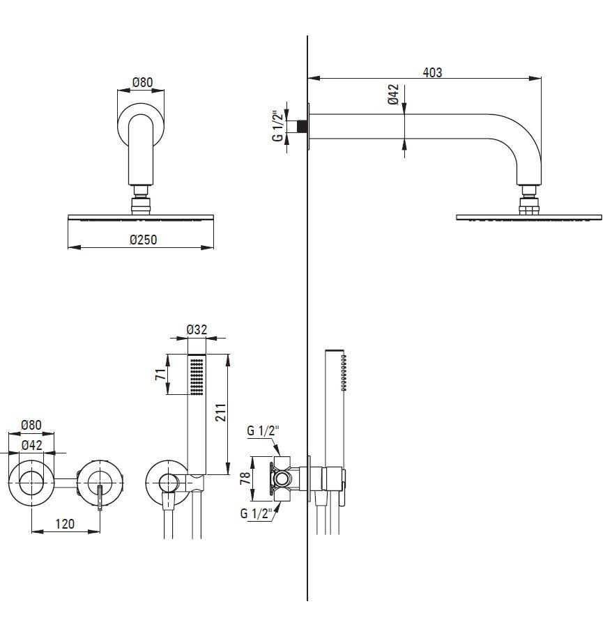 Inštalácia pod omietku vyžaduje dostatočný priestor v stene a presnú montáž. Súčasťou sady je všetko potrebné – výpust, hlavica, ručná sprcha, hadica, batéria a potrebné spojovacie komponenty.