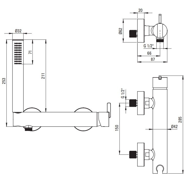 Sprchová hadica má dĺžku 1 500 mm a je vybavená systémom Anti‑twist, ktorý zabraňuje jej krúteniu a zaručuje pohodlné použitie. Sprchová hlavica má jednu funkciu a je vybavená technológiou Anti‑Calc (silikónové výstupky, ktoré zabraňujú usadzovaniu vodného kameňa). Navyše má funkciu Cool‑out, ktorá izoluje rukoväť tak, že sa pri prúdení horúcej vody nepremienia na horúci povrch – tým sa znižuje riziko oparenia a zvyšuje komfort používania.