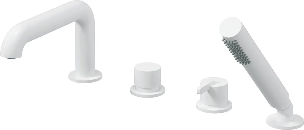 Elegantná vaňová batéria Deante Silia BQS_A14M v lmatnom bielom prevedení s kompletne integrovanou sprchovou súpravou. Vďaka 4‑otvorovému dizajnu je ideálna do moderných kúpeľní, kde sa kladie dôraz na estetiku aj funkčnosť. Obsahuje mechanický prepínač Click, systém Anti‑twist na hadicu, sprchovú hlavicu s Anti‑calc a komfortnú rukoväť Cool‑out.