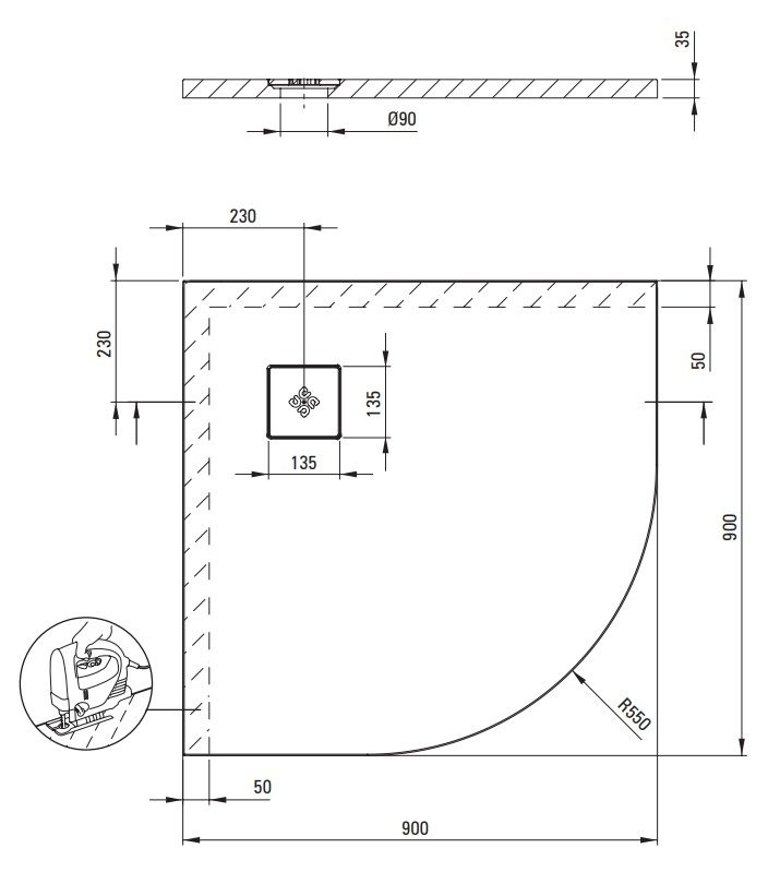 | Rozmery (DxŠ) | 900 × 900 mm |