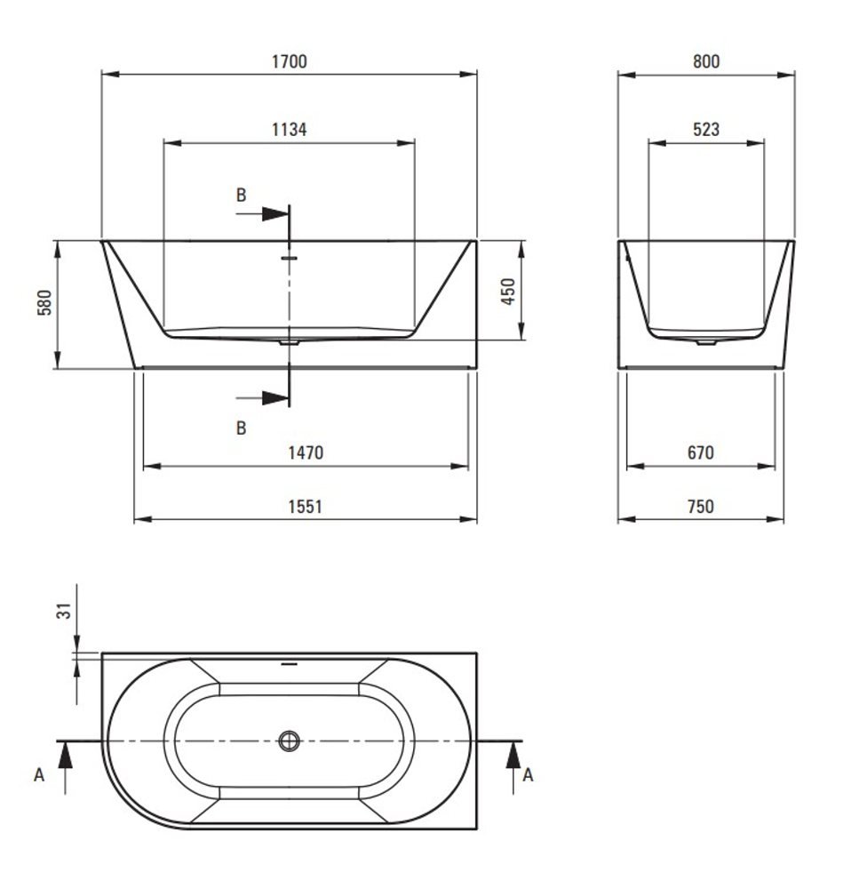 Veľkorysé rozmery 1700 × 800 × 580 mm poskytujú dostatok priestoru na relaxačné kúpanie. Vnútorná hĺbka 450 mm umožňuje pohodlné ponorenie tela. V cene balenia nájdete všetko, čo potrebujete na okamžitú montáž: syfón, klik‑klak korek a prepad.