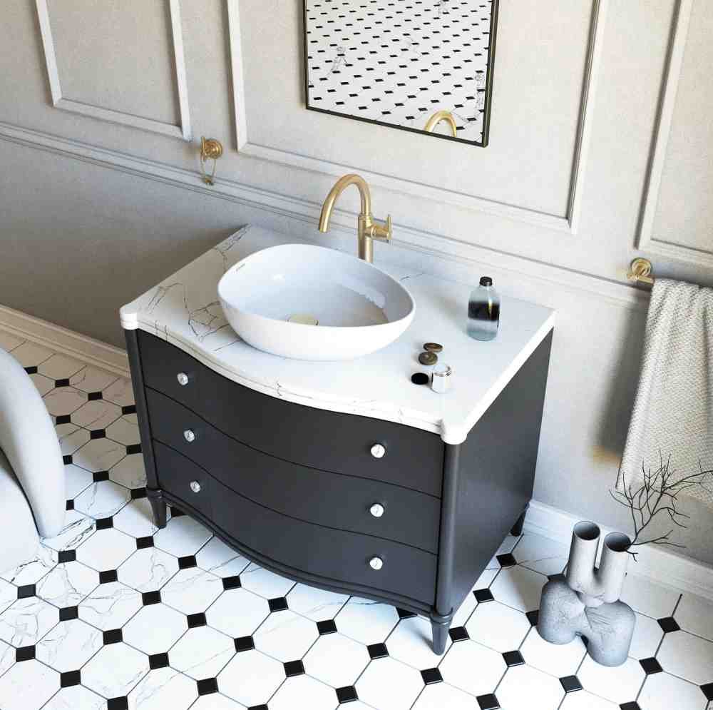 Tento model sa výborne hodí k armatúram s čiernym povrchom, no rovnako doplňuje neutrály či kontrasty v modernej kúpeľne. Asymetria rámu funguje aj ako dekoratívny prvok – nielen ako funkčné zrkadlo, ale aj estetický doplnok.