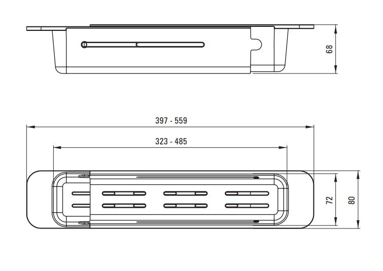 Hĺbka/rozsah dĺžky: od 397 mm do 559 mm – kôš je rozťahovateľný