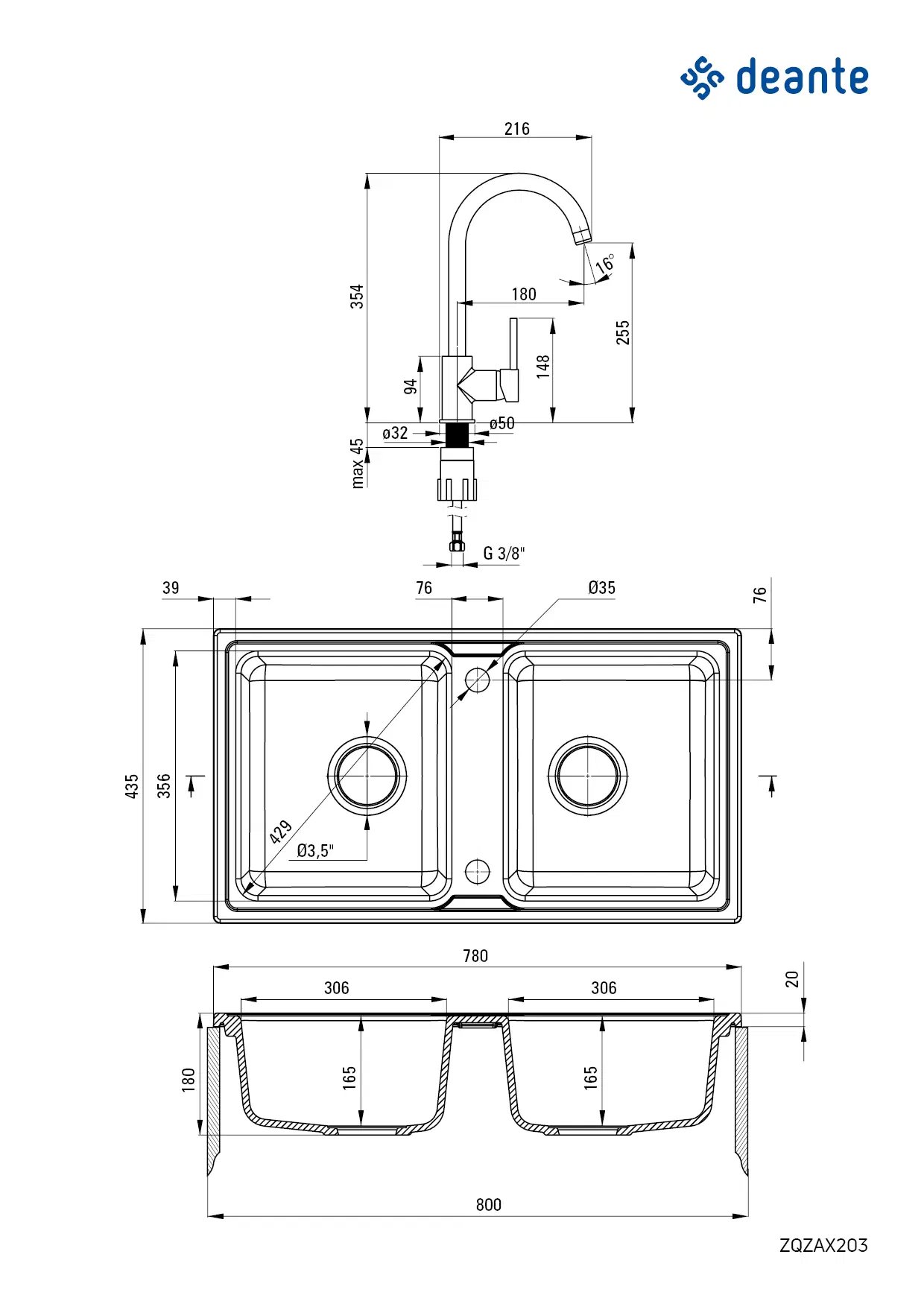 DEANTE ZORBA granitový drez 78 x 43,5 cm piesok ZQZ 7203 s batériou NEMEZJA piesok ZQZA7203