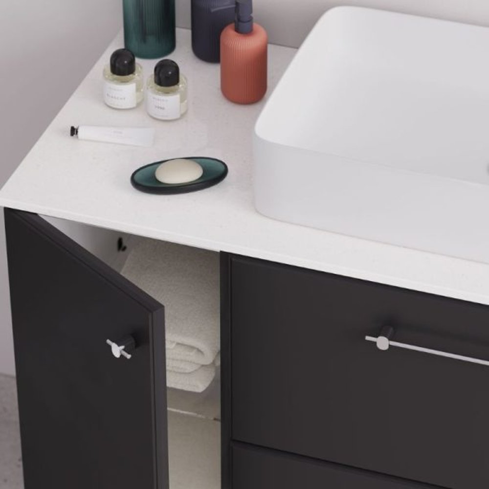 Materiál: Konglomerát zložený z akrylu, prírodných minerálov a pigmentov (HI-MACS®), čo zaručuje neporézny povrch, odolnosť voči vlhkosti a antibakteriálne vlastnosti