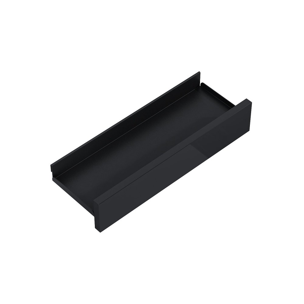Polica je vyrobená z odolnej ocele s práškovou povrchovou úpravou, čo zaručuje dlhú životnosť a vysokú odolnosť voči vlhkosti, teplotným výkyvom a bežným čistiacim prostriedkom. Predná dekoratívna časť je z kvalitnej nábytkovej dosky v čiernom prevedení vysoký lesk (High Gloss), ktorý dodáva produktu luxusný vzhľad.