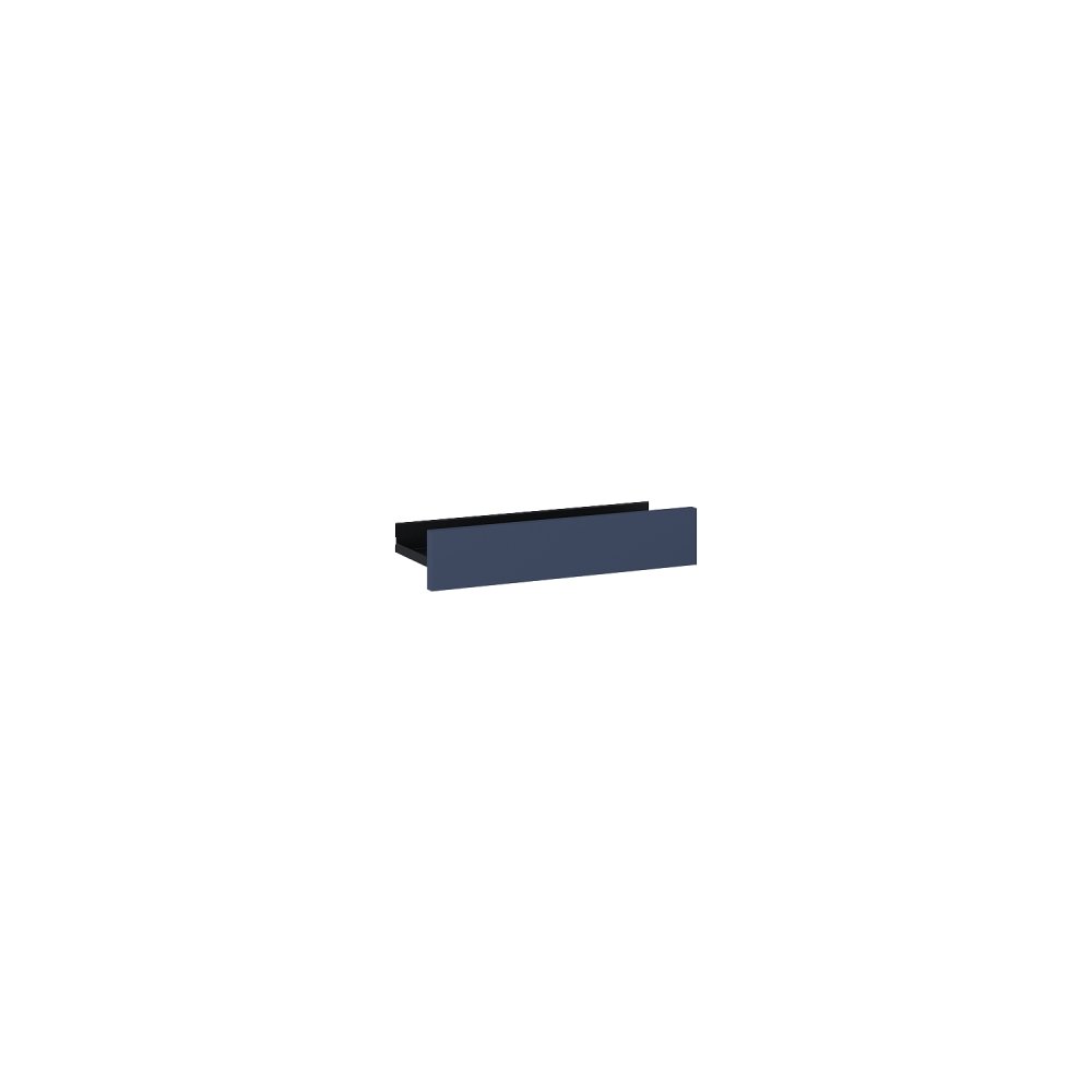 Polica je vyrobená z odolnej ocele s práškovou povrchovou úpravou, čo zaručuje dlhú životnosť a vysokú odolnosť voči vlhkosti, teplotným výkyvom a bežným čistiacim prostriedkom. Predná dekoratívna časť je z kvalitnej nábytkovej dosky v modrom prevedení, ktorý dodáva produktu luxusný vzhľad.