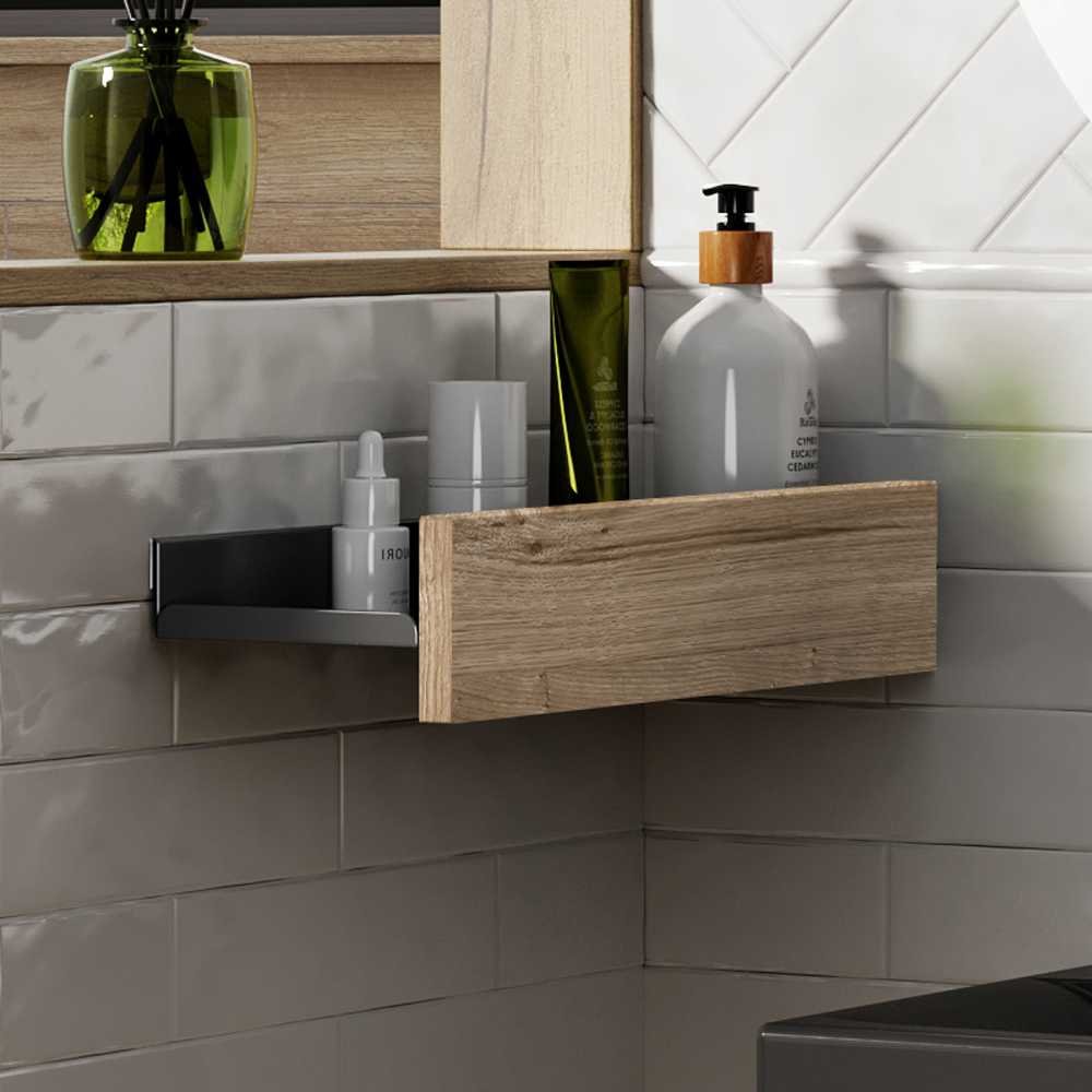 Moderná kúpeľňová polica Dub canela z kolekcie For All ponúka praktický úložný priestor a elegantný minimalistický dizajn. Vďaka oceľovej konštrukcii a kvalitnému lakovanému prevedeniu je ideálna do každej modernej kúpeľne.