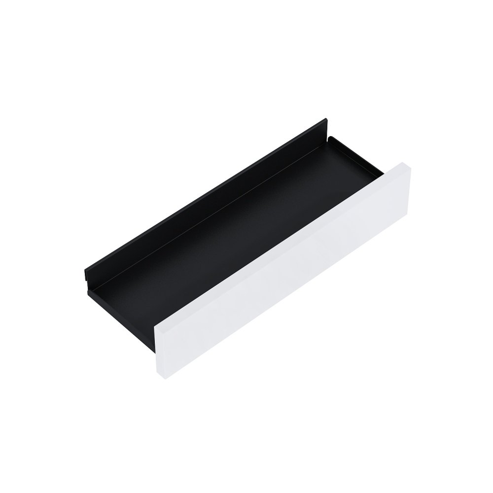 Polica je vyrobená z odolnej ocele s práškovou povrchovou úpravou, čo zaručuje dlhú životnosť a vysokú odolnosť voči vlhkosti, teplotným výkyvom a bežným čistiacim prostriedkom. Predná dekoratívna časť je z kvalitnej nábytkovej dosky v prevedení biely vysoký lesk (High Gloss), ktorý dodáva produktu luxusný vzhľad.
