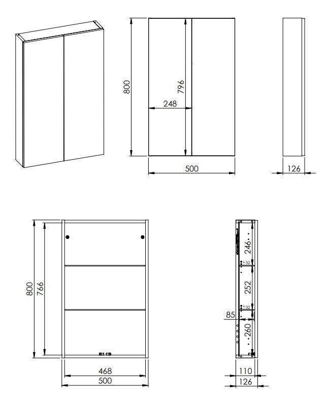 - Rozmery (Š x V x H): 50 × 80 × 12,6 cm