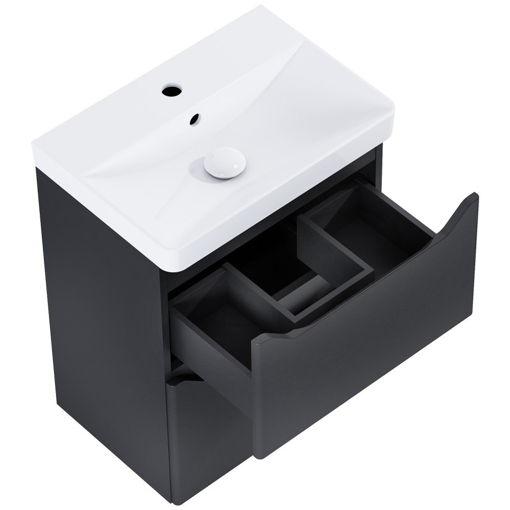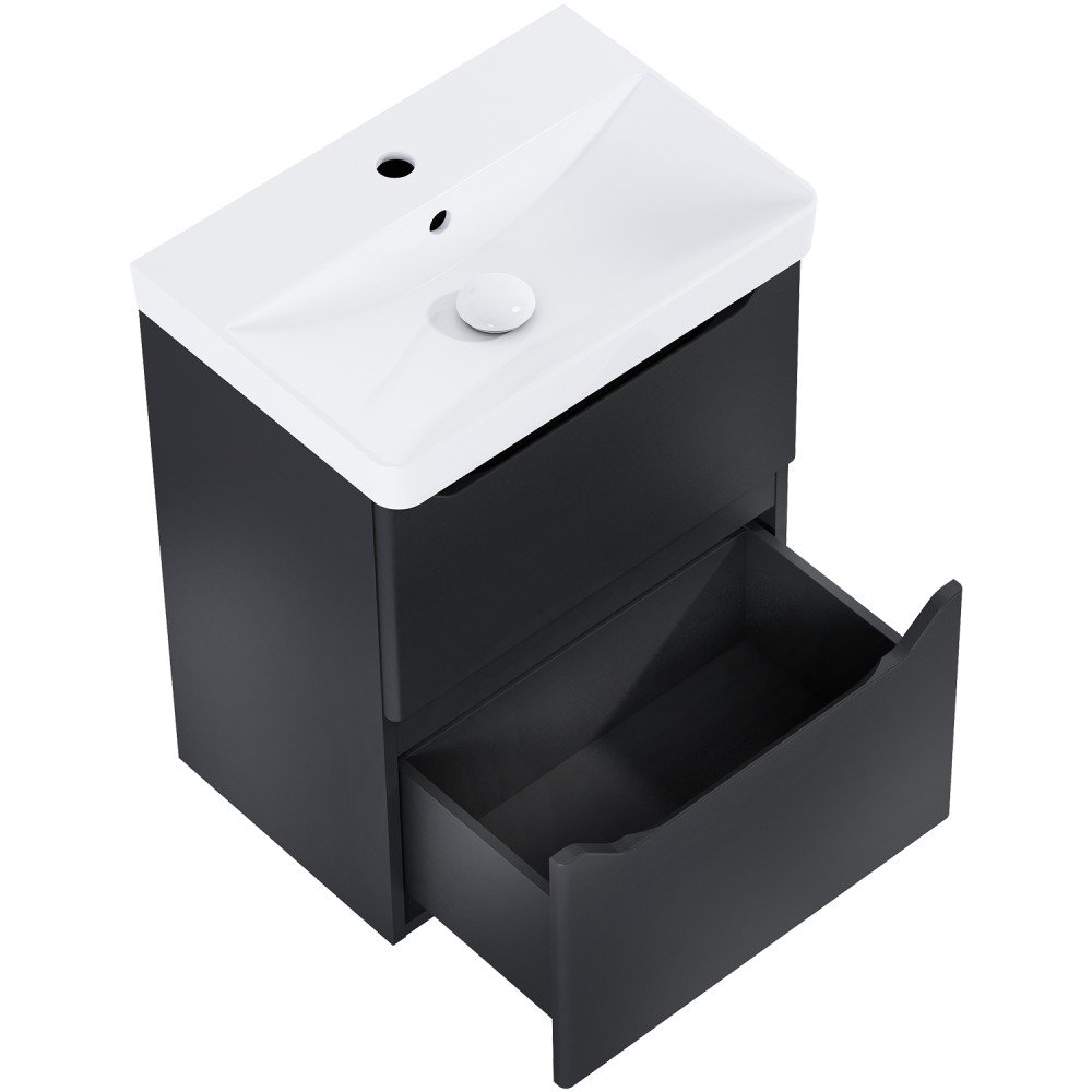 Exkluzívna kúpeľňová zostava v šírke 50 cm v elegantnom čiernom matnom prevedení. Obsahuje skrinku s dvomi plnovýsuvnými zásuvkami so systémom tichého zatvárania (soft-close) a keramické umývadlo. Ideálna voľba pre moderné kúpeľne s dôrazom na dizajn a praktickosť.