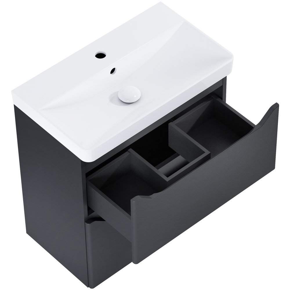 Prevedenie v matnej čiernej farbe dodá vašej kúpeľni výrazný osobitý vzhľad, ktorý je zároveň nenápadné elegantný. Skrinka je závesná, čo opticky zväčšuje priestor a uľahčuje údržbu podlahy.