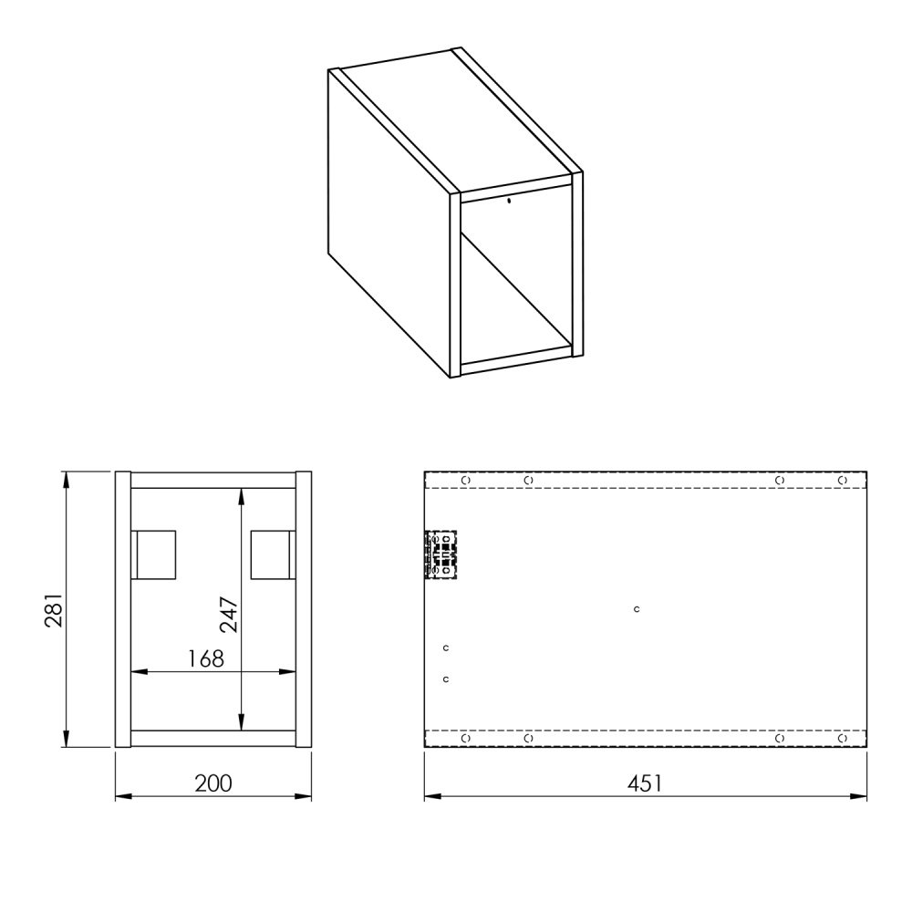 Modul Look Slim 20 Black Matt je elegantný a funkčný doplnok do kúpeľne s matným čiernym povrchom. Tento modul má rozmery 20x28,1x45,1 cm a je ideálny na doplnenie kúpeľňového nábytku zo série Look. Môže slúžiť aj ako samostatná polička. Vybavený dvoma kovovými závesmi, ktoré umožňujú nosnosť až 60 kg, zabezpečuje praktický a stabilný úložný priestor.
