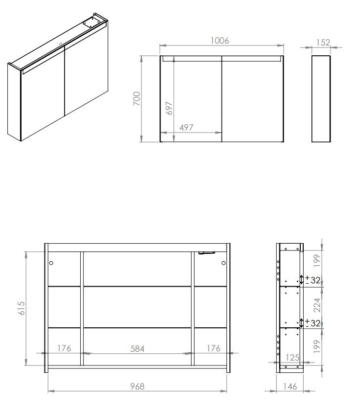 - Typ: kúpeľňová zrkadlová skrinka s LED