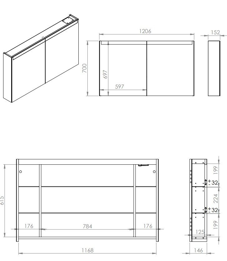 Elita SPECIAL zrkadlová skrinka Technobox s LED osvetlením 120 cm 2D RE068927000010 - 120 cm