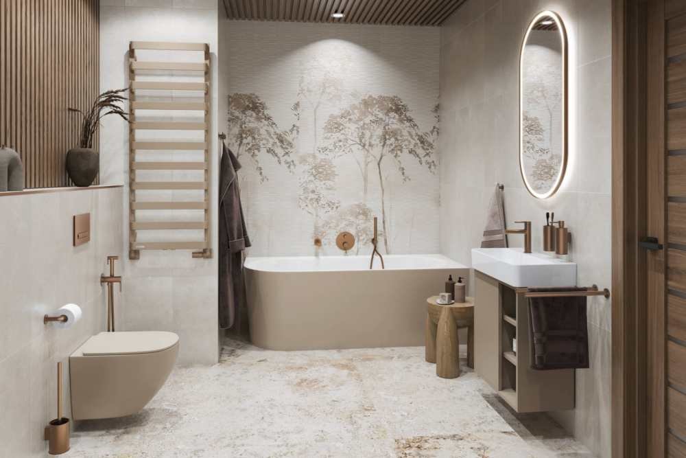 Štýlové oválne kúpeľňové zrkadlo Excellent CORIDO s integrovaným LED osvetlením, nastaviteľnou farbou svetla a vyhrievaním proti zahmlievaniu. Elegantný hliníkový rám v prevedení meď brúsená a moderné dotykové ovládanie zaručujú maximálny komfort aj luxusný vzhľad kúpeľne.