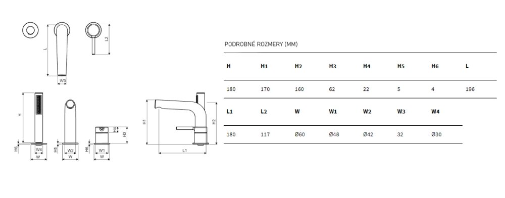 | Typ výrobku | Vaňová stojanková 3-otvorová batéria |