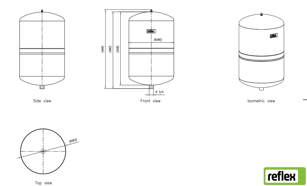 Expanzná nádoba je jedným z prvkov chrániacich uzavretý systém ústredného kúrenia. Multifunkčná nádoba s nevymeniteľnou membránou pre uzavreté vykurovacie systémy. Je Navrhnutá a optimalizovaná pre kompenzáciu zvýšenia tlaku v dôsledku uvedenia čerpadla do prevádzky, alebo zmenu objemu vody v dôsledku zmeny teploty vo vykurovacom systéme. Počas inštalácie, upravte tlak vzduchu potrebám vykurovacieho systému. Tlakové expanzné nádoby môžu byť použité vo vykurovacích sústavách v prevádzkových teplotách od -10 ° C do + 100 ° C. Vo vykurovacích sústavách s expanznou nádobou musí byť použitý aspoň jeden poistný ventil, tlakomer a teplomer.