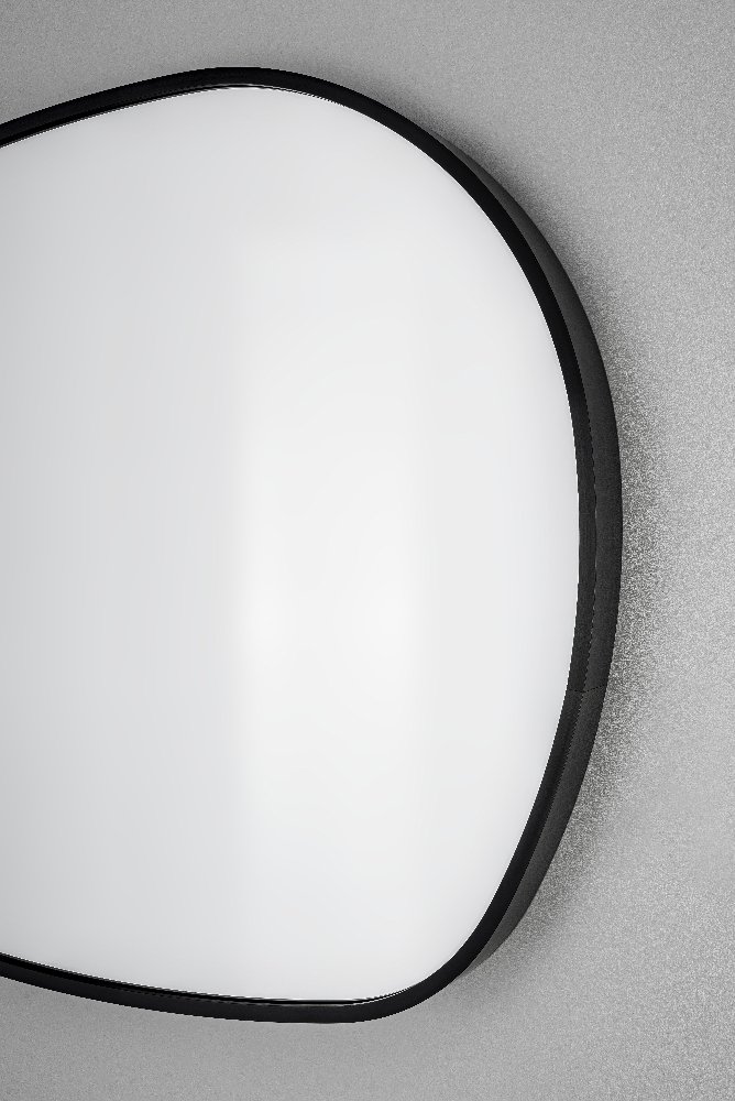 Ozdobné zrkadlo Chili 80×51 cm je štýlový prvok pre kúpeľňu, predsieň alebo obývací priestor s čiernym hliníkovým rámom a nepravidelným tvarom, ktorý mu dodáva moderný a originálny vzhľad. Hlboký rám (40 mm) rámuje zrkadlovú plochu, čo vytvára dizajnový kontrast a zároveň robí produkt výrazným dekoratívnym prvkom. Je určené na zavesenie na stenu a vďaka povrchovej úprave sa dobre kombinuje s rôznymi materiálmi a štýlmi interiéru.