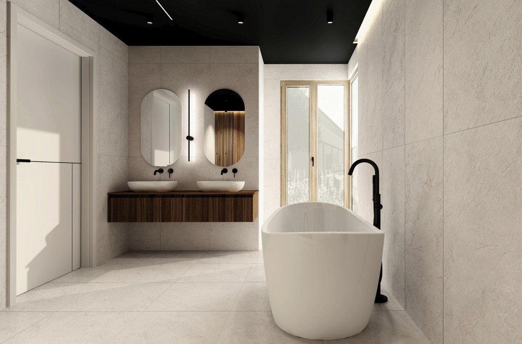 Carving efekt pridáva povrchu hĺbku a jemný tieňový reliéf, čo pomáha prelomiť rovinnosť a dodáva dlažbe zaujímavejší vizuál pri rôznom nasvietení. Výsledný vzhľad je sofistikovaný, čistý a trochu industriálny, no stále s teplým prvkom v podtóne, vďaka efektu textury.