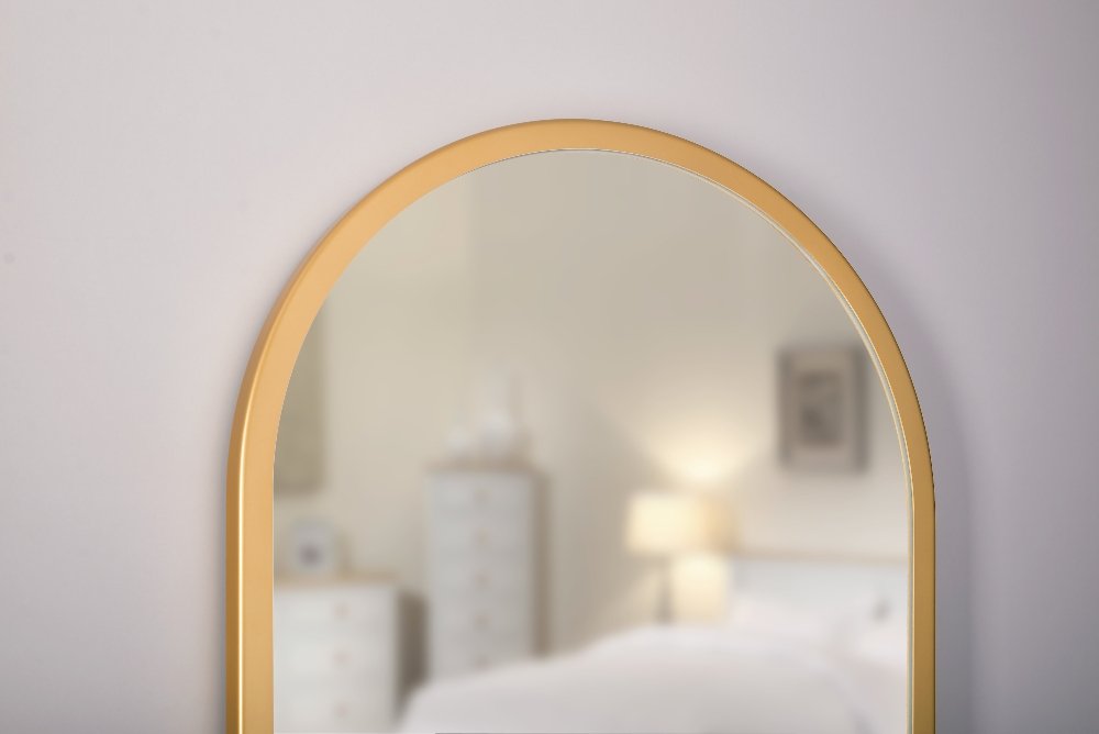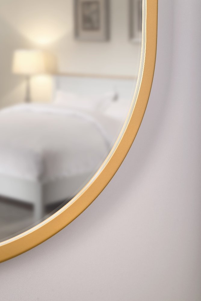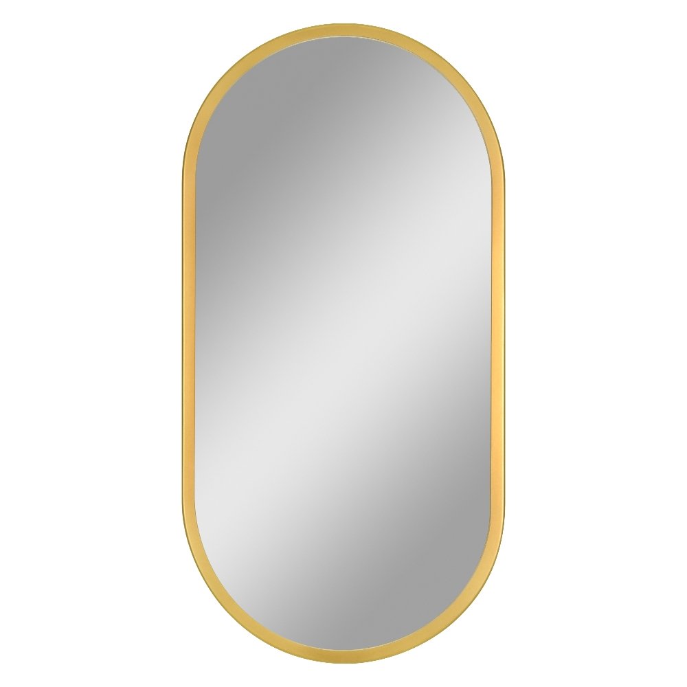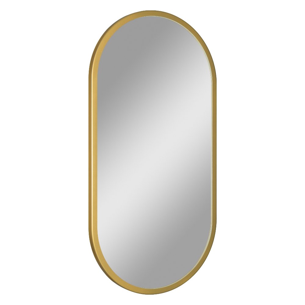 Oválne zrkadlo Evo 50×100 cm (gold) s zlatým rámom z odolného plastu je štýlový doplnok do kúpeľne, predsiene alebo chodby. Jeho jednoduchý, ale elegantný dizajn bez osvetlenia zvýrazní priestor bez rušivých prvkov a hodí sa do moderných aj klasických interiérov. Zrkadlo sa zavesí na stenu vertikálne alebo horizontálne podľa potreby a jeho veľkosť je ideálna nad umývadlom alebo pri vstupe do miestnosti.