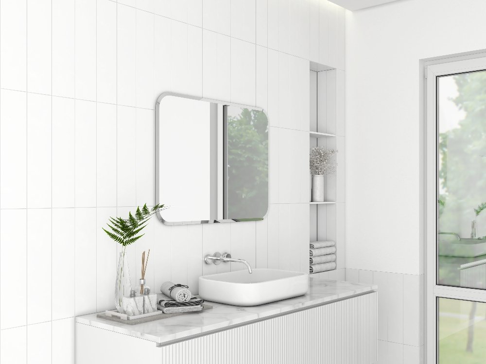Obdĺžnikové zrkadlo Harry 60×80 cm je jednoduché, ale štýlové riešenie pre kúpeľňu, chodbu alebo predsieň. Má zaoblené rohy a skosené (fazetové) hrany, ktoré dodávajú zrkadlu elegantný detail bez nutnosti osvetlenia. Montuje sa na stenu a vďaka dizajnu ho môžeš zavesiť vertikálne alebo horizontálne podľa dispozície priestoru.