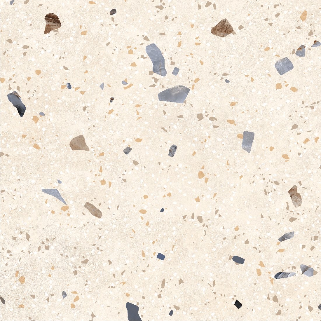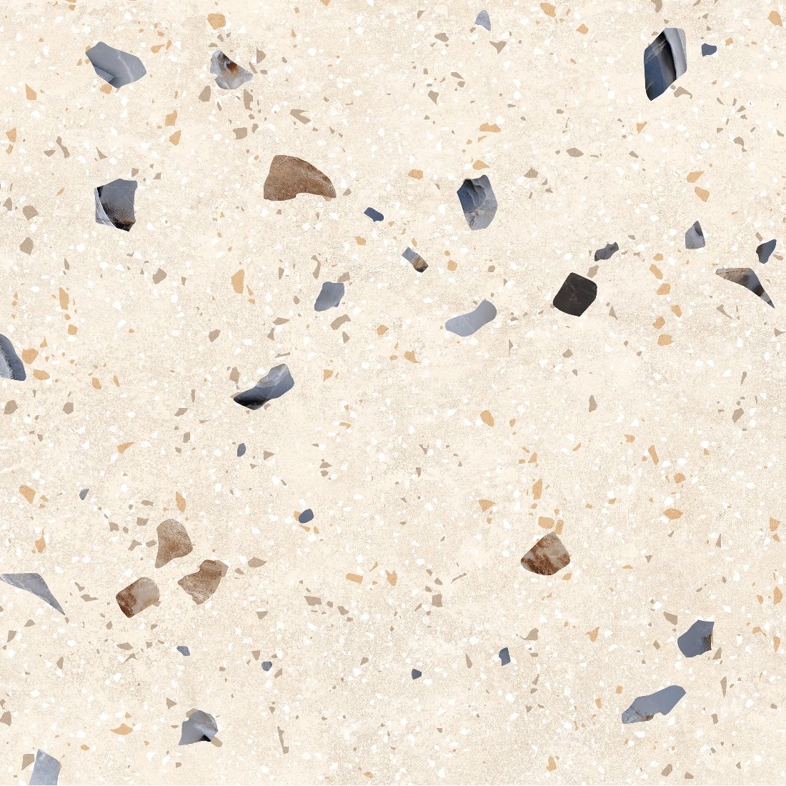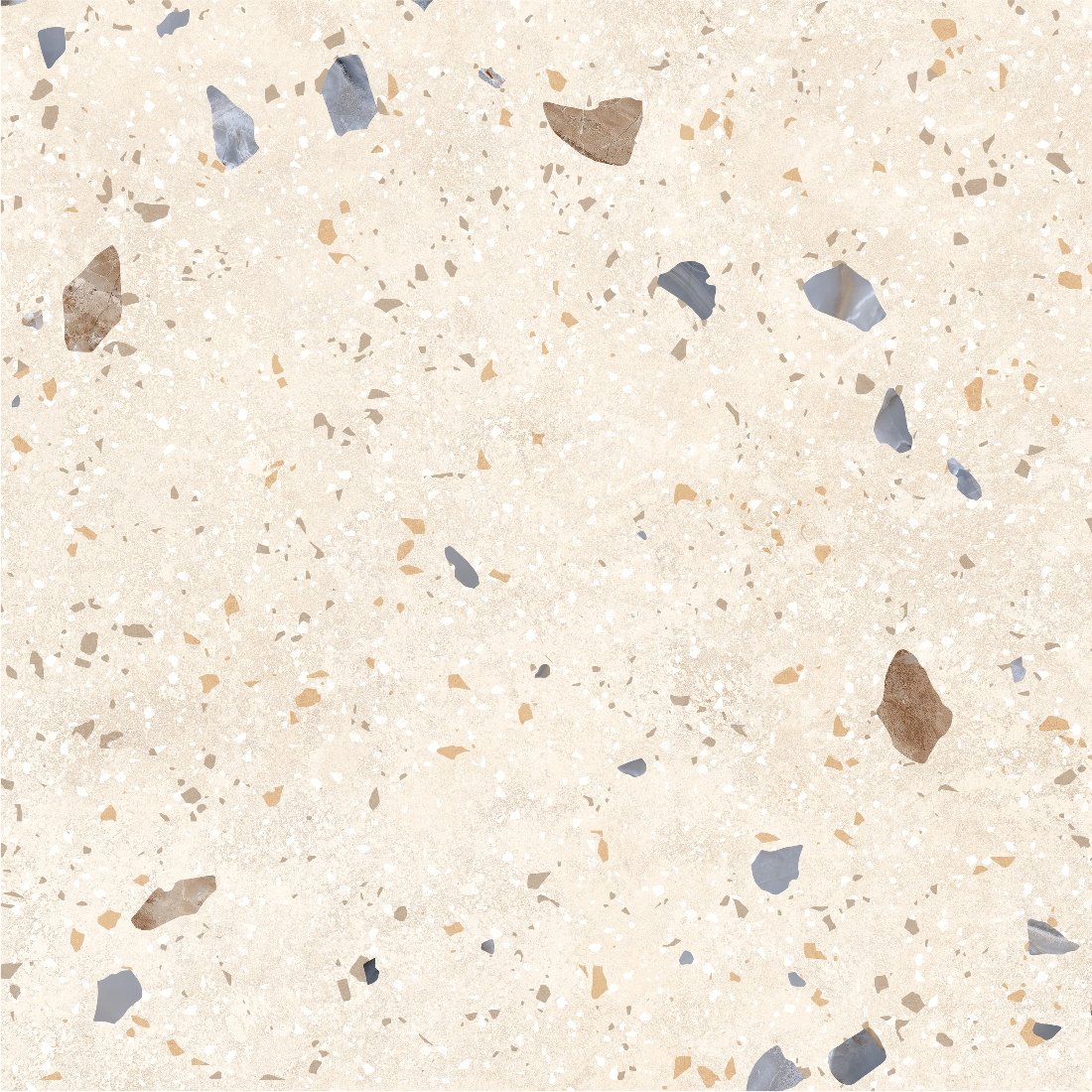 Dlažba Kompas Ivory Chips je inšpirovaná tradičným terrazzo vzorom, ktorý kombinuje svetlý podklad s jemnými farebnými kamienkami rôznych veľkostí. Tento dekor pôsobí živšie než klasický kameň, no stále si zachováva čistý a vyvážený vzhľad. Svetlý ivory odtieň opticky presvetľuje priestor a zároveň sa veľmi dobre kombinuje s drevom, bielou aj kontrastnými prvkami. Matný povrch tlmí odlesky a zvýrazňuje prirodzenú kresbu, vďaka čomu pôsobí dlažba prirodzene a nenútene. Terrazzo vzor patrí medzi nadčasové riešenia, ktoré sa neopozerajú a dodajú priestoru jemný dizajnový akcent. Výsledkom je moderný, svieži a zároveň praktický povrch vhodný do interiéru aj exteriéru.