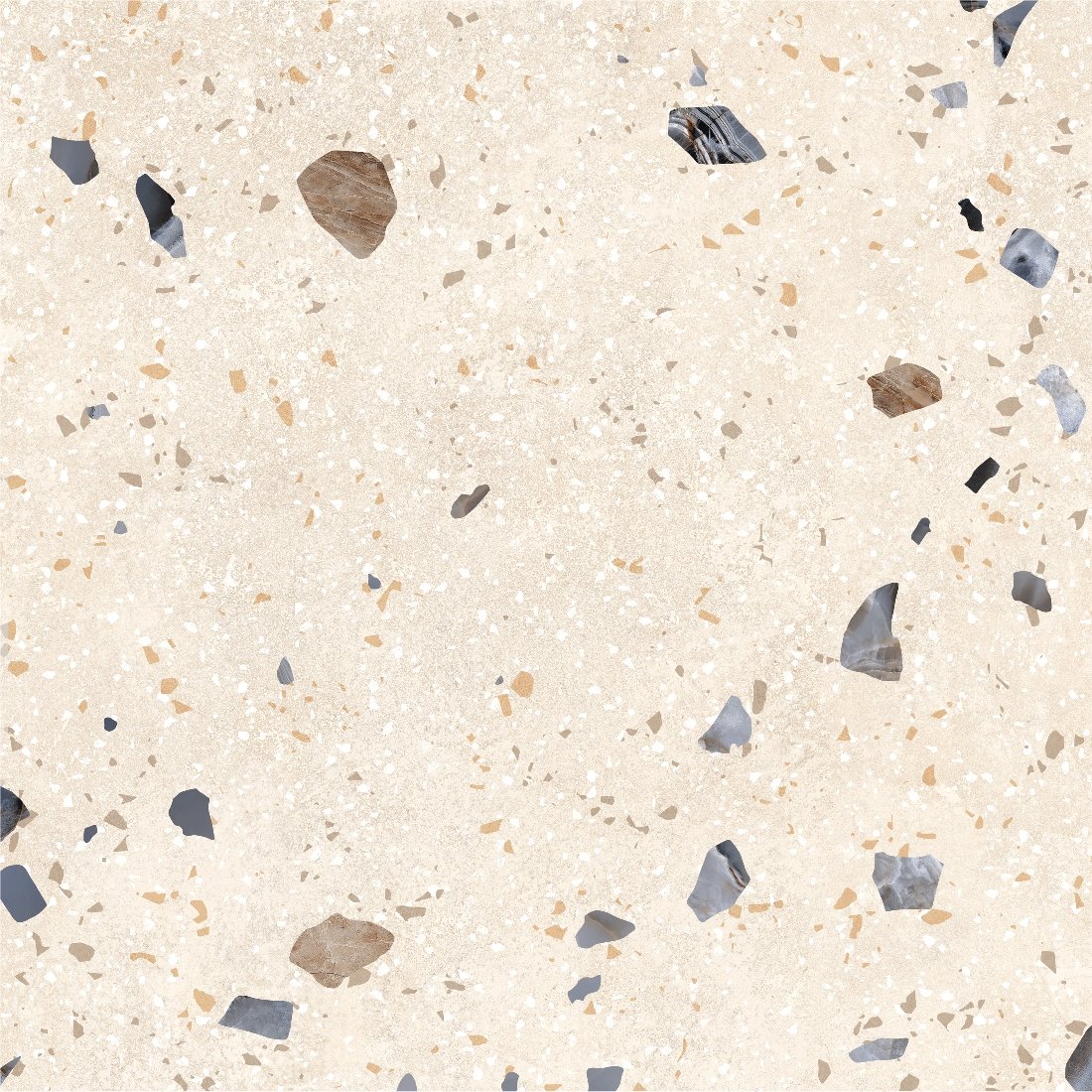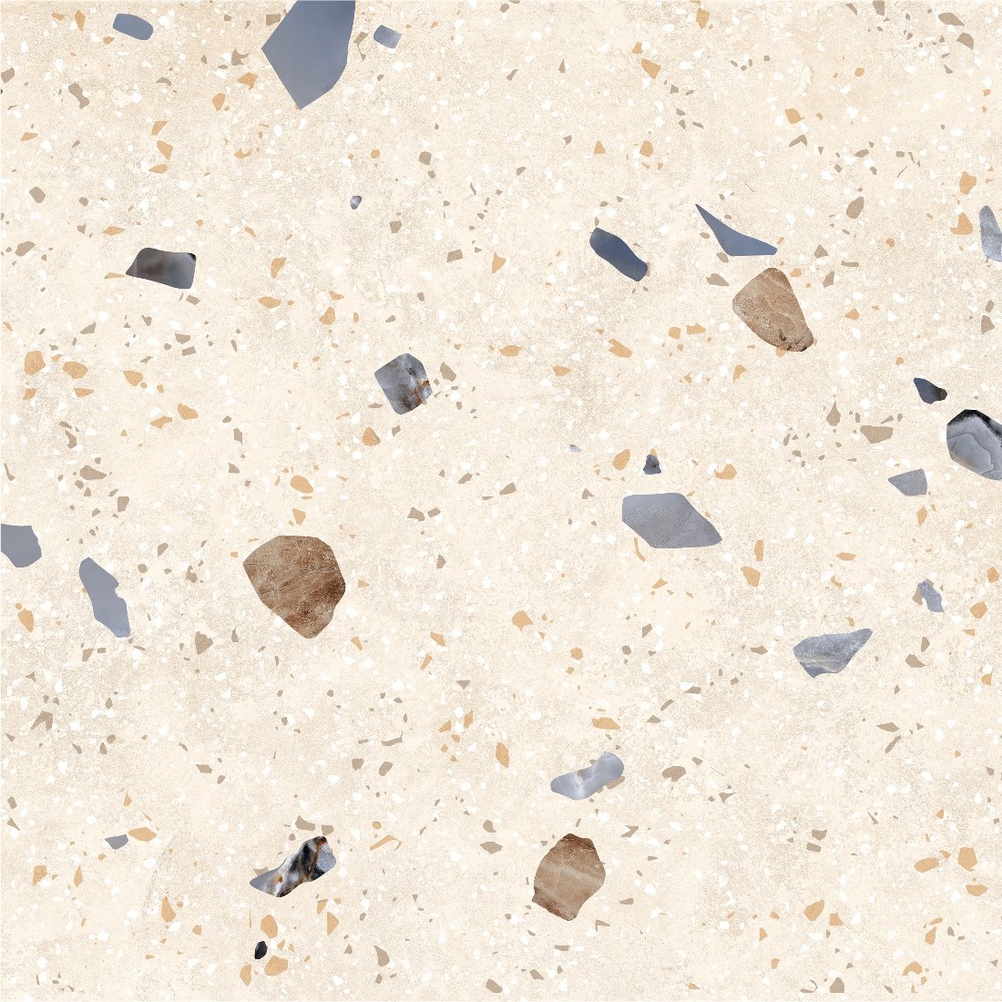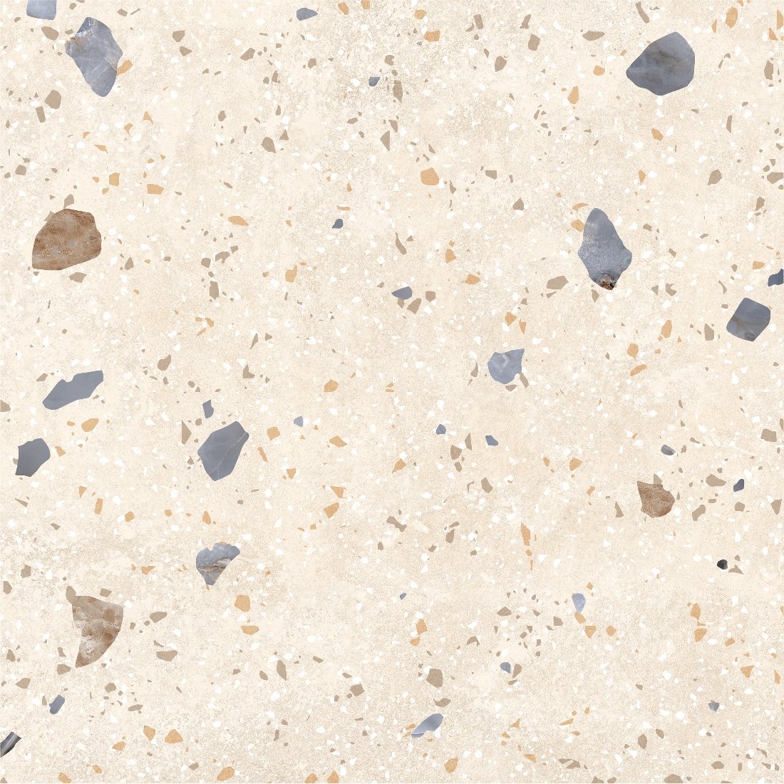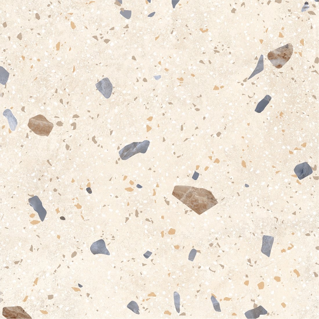 Dlažba Kompas Ivory Chips je inšpirovaná tradičným terrazzo vzorom, ktorý kombinuje svetlý podklad s jemnými farebnými kamienkami rôznych veľkostí. Tento dekor pôsobí živšie než klasický kameň, no stále si zachováva čistý a vyvážený vzhľad. Svetlý ivory odtieň opticky presvetľuje priestor a zároveň sa veľmi dobre kombinuje s drevom, bielou aj kontrastnými prvkami. Matný povrch tlmí odlesky a zvýrazňuje prirodzenú kresbu, vďaka čomu pôsobí dlažba prirodzene a nenútene. Terrazzo vzor patrí medzi nadčasové riešenia, ktoré sa neopozerajú a dodajú priestoru jemný dizajnový akcent. Výsledkom je moderný, svieži a zároveň praktický povrch vhodný do interiéru aj exteriéru.