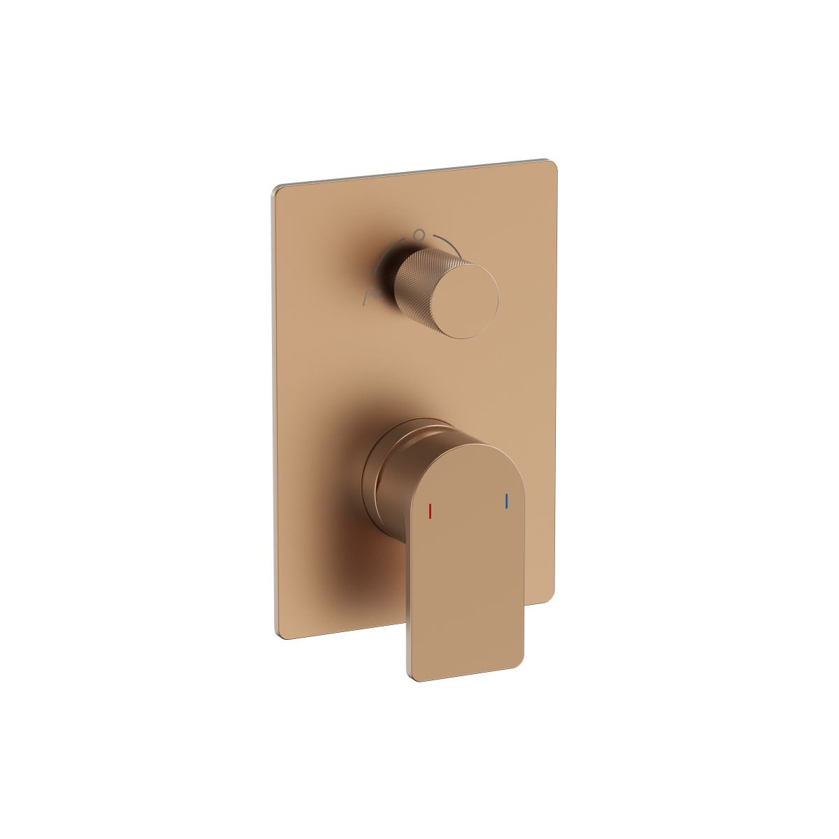 Podomietková sprchová batéria pre 2 výstupy v brúsenom medenom prevedení. Minimalistické a spoľahlivé riešenie pre moderné kúpeľne bez zbytočných funkcií.