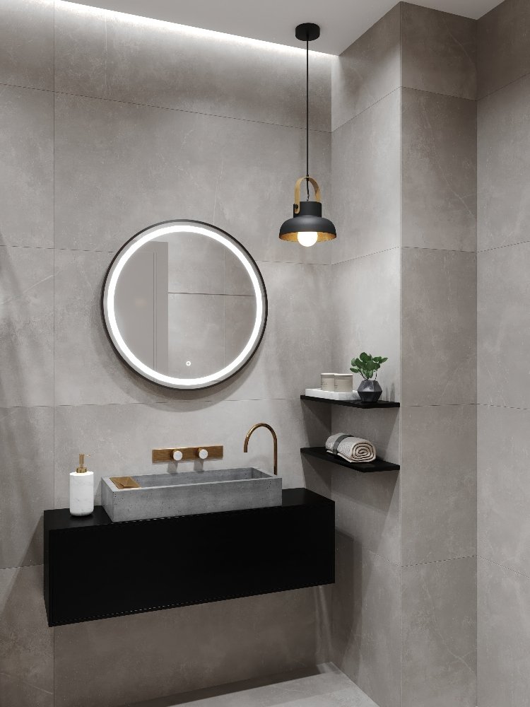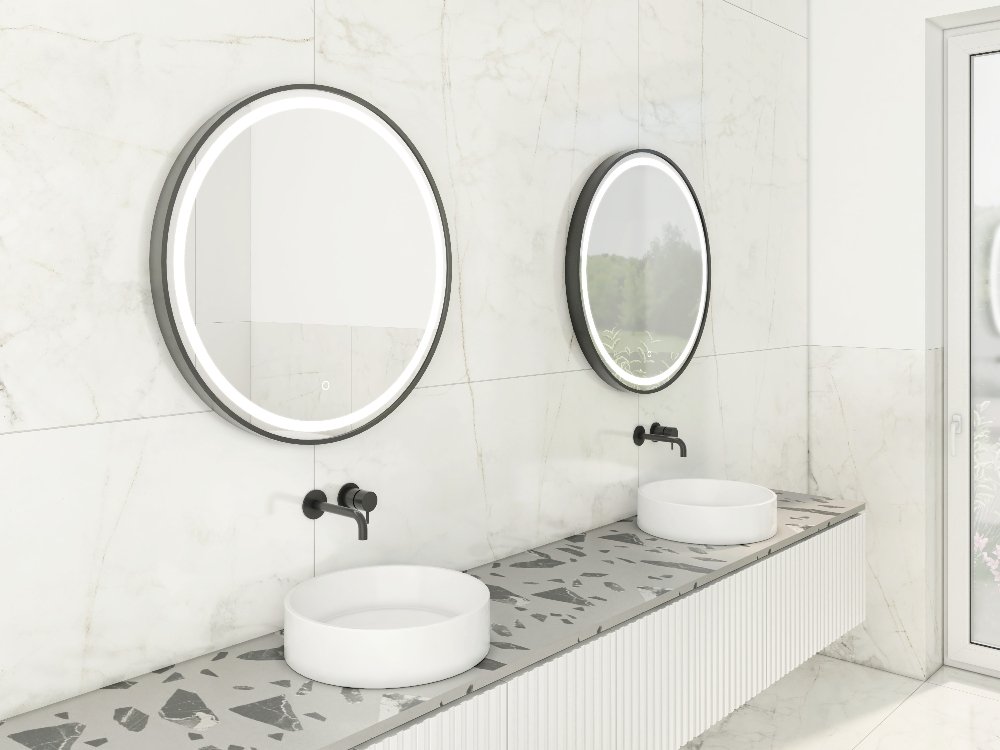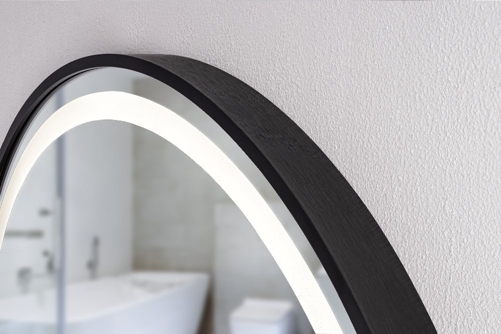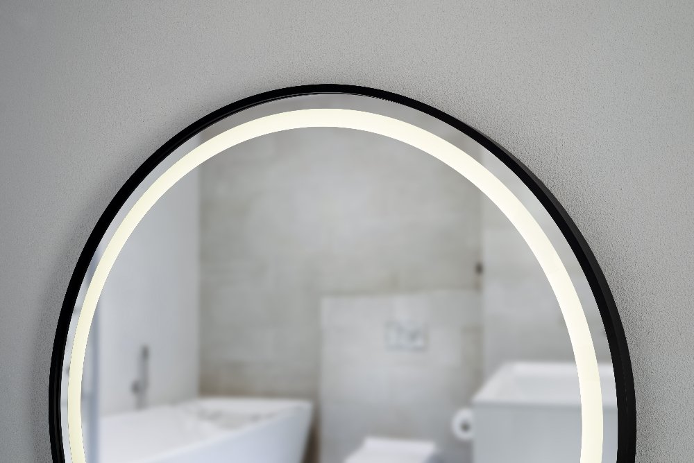 LED zrkadlo Moon 70 × 70 cm je moderný dizajnový doplnok do kúpeľne či chodby s výrazným čiernym rámom z brúseného hliníka a integrovaným LED osvetlením. Okrúhly tvar a rovnomerné svetlo neutrálnych tónov (4000 K) poskytujú kvalitné osvetlenie v každodennom živote. Zapínanie je jednoduché pomocou dotykového spínača priamo na povrchu zrkadla. Vďaka triede ochrany IP44 je vhodné aj do vlhkejších priestorov, čím kombinuje štýl s funkčnosťou.