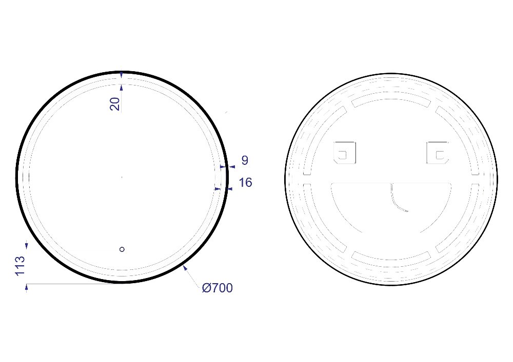 Technické parametre – LED zrkadlo Moon 70