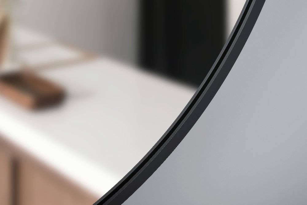 Okrúhle zrkadlo Nico Koło ⌀ 80 cm je minimalistický dekoratívny prvok vhodný do kúpeľne, chodby alebo predsiene. Má hlboký čierny hliníkový rám s brúseným povrchom, ktorý zrkadlu dodáva pevný a elegantný charakter bez osvetlenia. Vďaka jednoduchému tvaru a čistému designu sa hodí do rôznych štýlov interiéru a montuje sa na stenu.