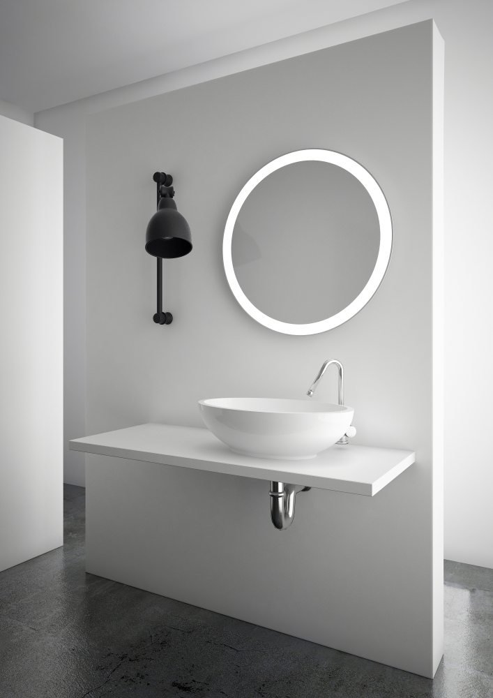 Luxusné zrkadlo Omega 60 od DubielVitrum je navrhnuté s dôrazom na jednoduchosť a funkčnosť. Je obzvlášť vhodné do kúpeľne, vstupnej haly alebo priestorov, kde chcete mať decentné, rovnomerné osvetlenie tváre. Osvetlenie po obvode je elegantne skryté za matným pásom, čím vzniká jemný rozptyl svetla a eliminujú sa ostré tiene.