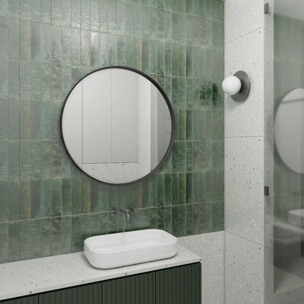 Okrúhle dekoratívne zrkadlo 60×60 cm s hlbokým čiernym rámom vytvára moderný priestorový efekt. Zrkadlová plocha je zapustená v ráme, čo pôsobí vizuálne zaujímavo a zároveň dodáva zrkadlu hĺbku. Je ideálne do kúpeľne, chodby alebo predsiene a montuje sa na stenu.