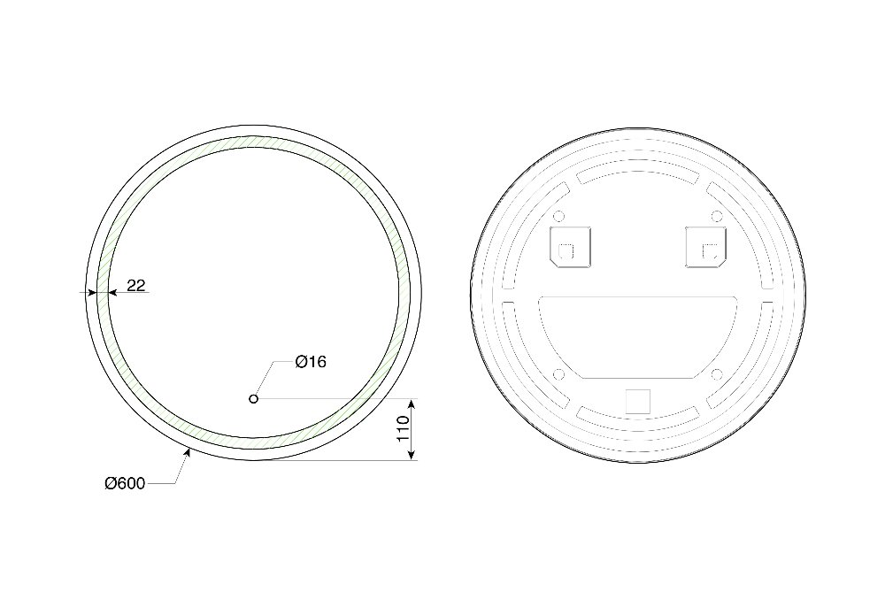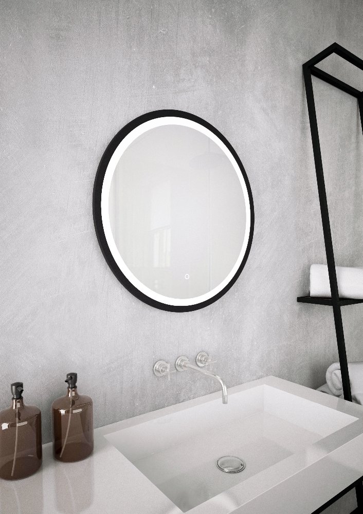 Okrúhle LED zrkadlo Ring Light 60×60 cm s LED podsvietením je štýlový doplnok do kúpeľne či chodby s rovnomerne rozloženým svetlom a moderným čiernym rámom. Integrované LED osvetlenie s neutrálnou farbou (4000 K) poskytuje prirodzené podanie farieb pri každodennom používaní. Dotykové ovládanie priamo na zrkadle uľahčuje spínanie svetla. Vďaka IP44 je zrkadlo vhodné aj do vlhkejších priestorov, takže sa hodí aj do kúpeľne.