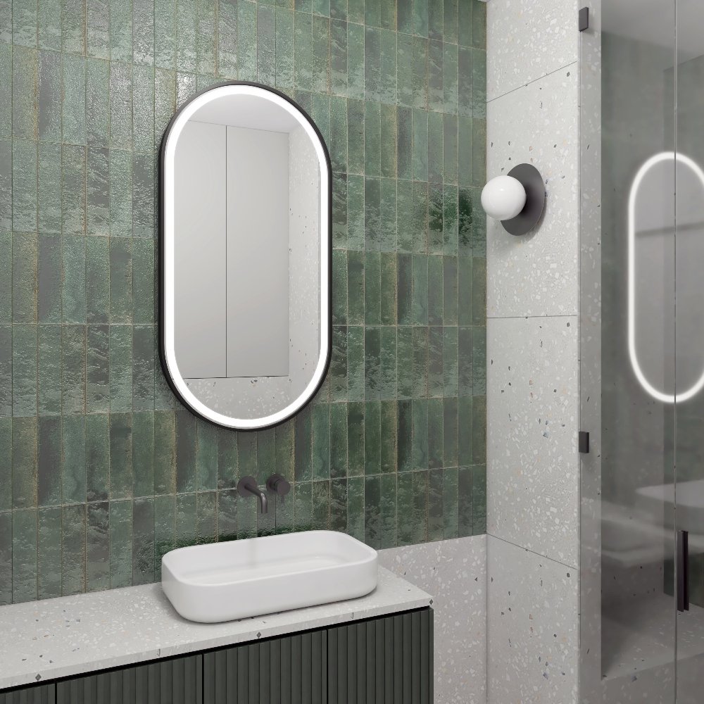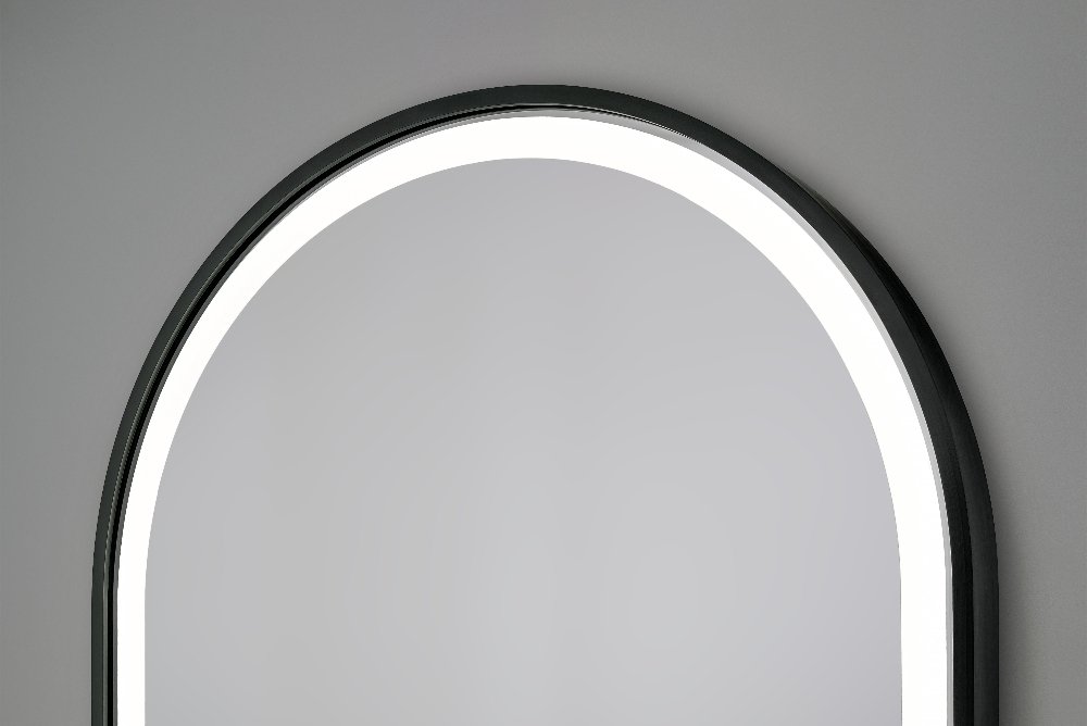 LED zrkadlo Solaris Black 50×100 cm je elegantné oválne riešenie s obvodovým LED osvetlením a čiernym rámom z brúseného hliníka, ktoré poskytuje rovnomerné a príjemné svetlo s neutrálnou farebnou teplotou. Osvetlenie z LED pásu okolo zrkadla skvele funguje pri bežnej starostlivosti o vzhľad a zároveň vytvára dizajnový efekt v kúpeľni či chodbe. Zrkadlo sa dá zavesiť vertikálne alebo horizontálne podľa potrieb priestoru a vďaka IP54 je vhodné aj do vlhkejších priestorov, ako je kúpeľňa.