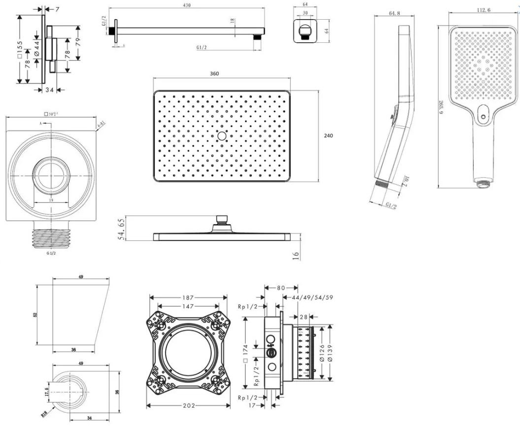 - dodávané s tlačidlami: Silný dážď/Slabý dážď/Ručná sprcha/Vodopád/Vaňa