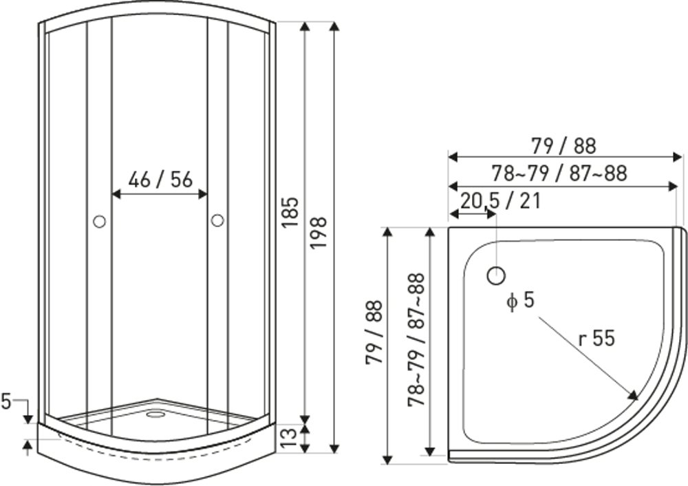 | Typ výrobku | Štvrťkruhový sprchový kút |