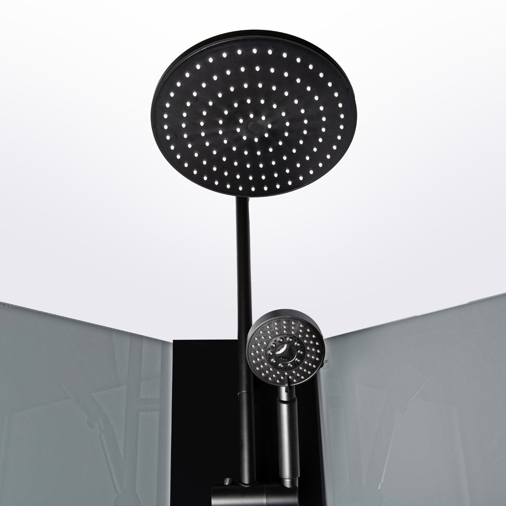 Model Wega Black od Kerra je štýlové a praktické riešenie do kúpeľne, ktoré spája luxusný dizajn s funkčnosťou. Kabína má rozmer 90 × 90 × 226 cm, čierne hliníkové profily a dvojkrídlové posuvné dvere, ktoré dodávajú celému priestoru prémiový vzhľad. Predné sklo je 5 mm kalené, zadné sklo a panel sú z 4 mm kaleného skla a všetky sklenené plochy sú ošetrené povrchovou úpravou Kerra Protect, ktorá minimalizuje usadzovanie vodného kameňa a uľahčuje čistenie.