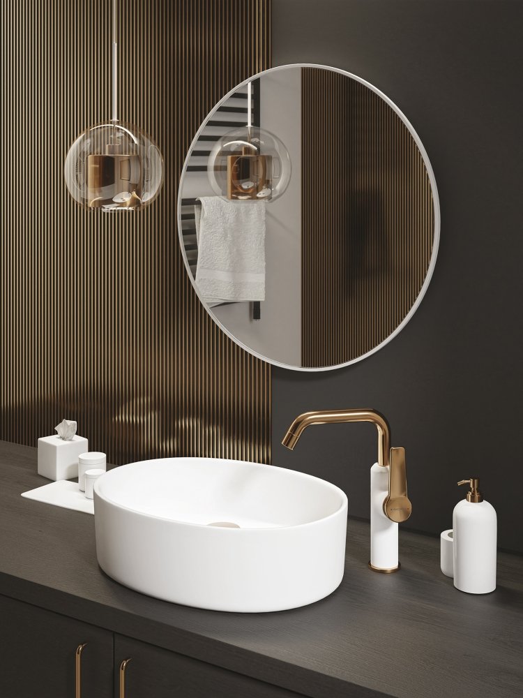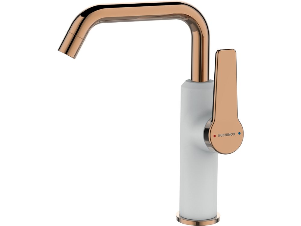 Kuchinox ALANIS umývadlová stojanková batéria s L ramenom BQI_625D - biela / ružové zlato