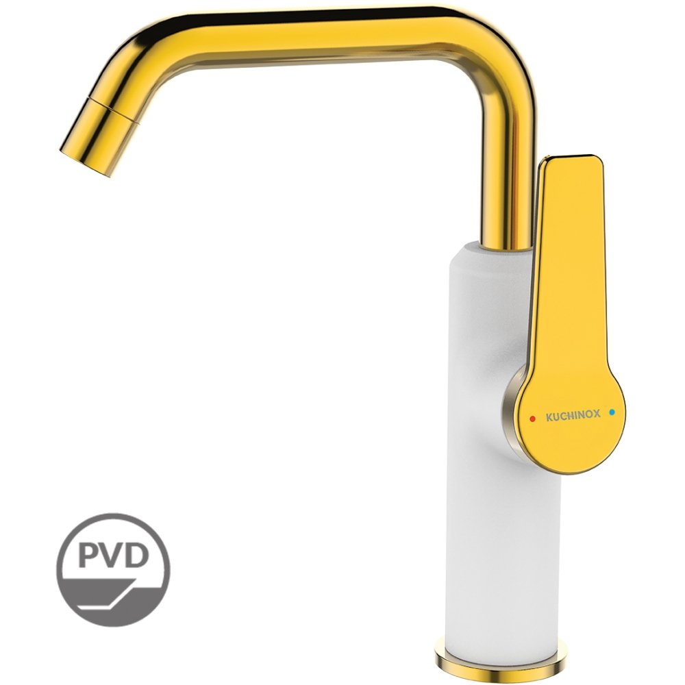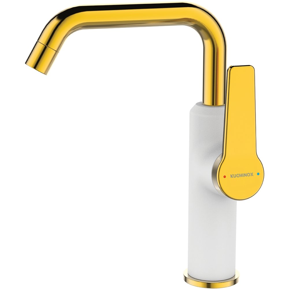 Kuchinox ALANIS umývadlová stojanková batéria s L ramenom BQI_625G - biela / zlatá