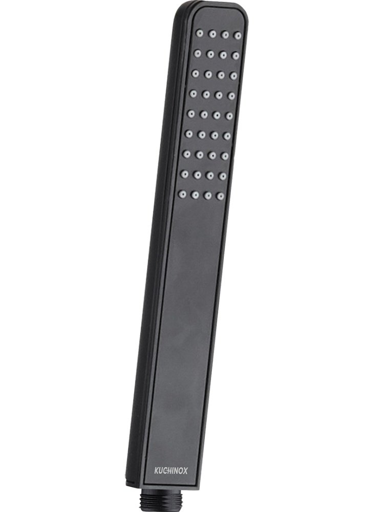 Model Kuchinox ARES (kód NKS_7SAD) predstavuje štýlový doplnok pre vašu sprchovú zónu — čierna matná farba a minimalistický, obdĺžnikový tvar (cca 220 × 30 mm) zabezpečujú, že hlavica pôsobí súčasne elegantne a decentne.