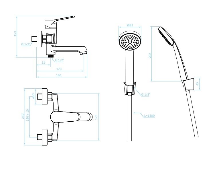Výška batérie od pripojení je 153 mm, čo je kompaktné a vhodné pre väčšinu konštrukcií vane.