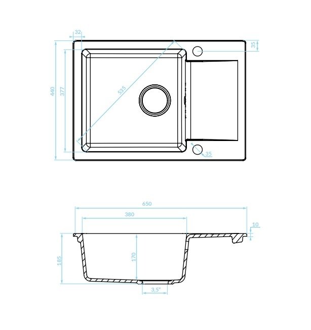 Drez CELEBES je vynikajúcou voľbou pre moderné kuchyne, kde má každý centimeter význam. Vyhotovený zo starostlivo zvoleného granitu, ponúka robustnosť a spoľahlivosť v jednom kompaktnom prevedení. Celkové rozmery 650 × 440 × 185 mm umožňujú montáž už do skrinky od 50 cm šírky, čím sa tento model stáva skvelým riešením aj pre menšie byty, študentské izby alebo kuchynské rohy.
